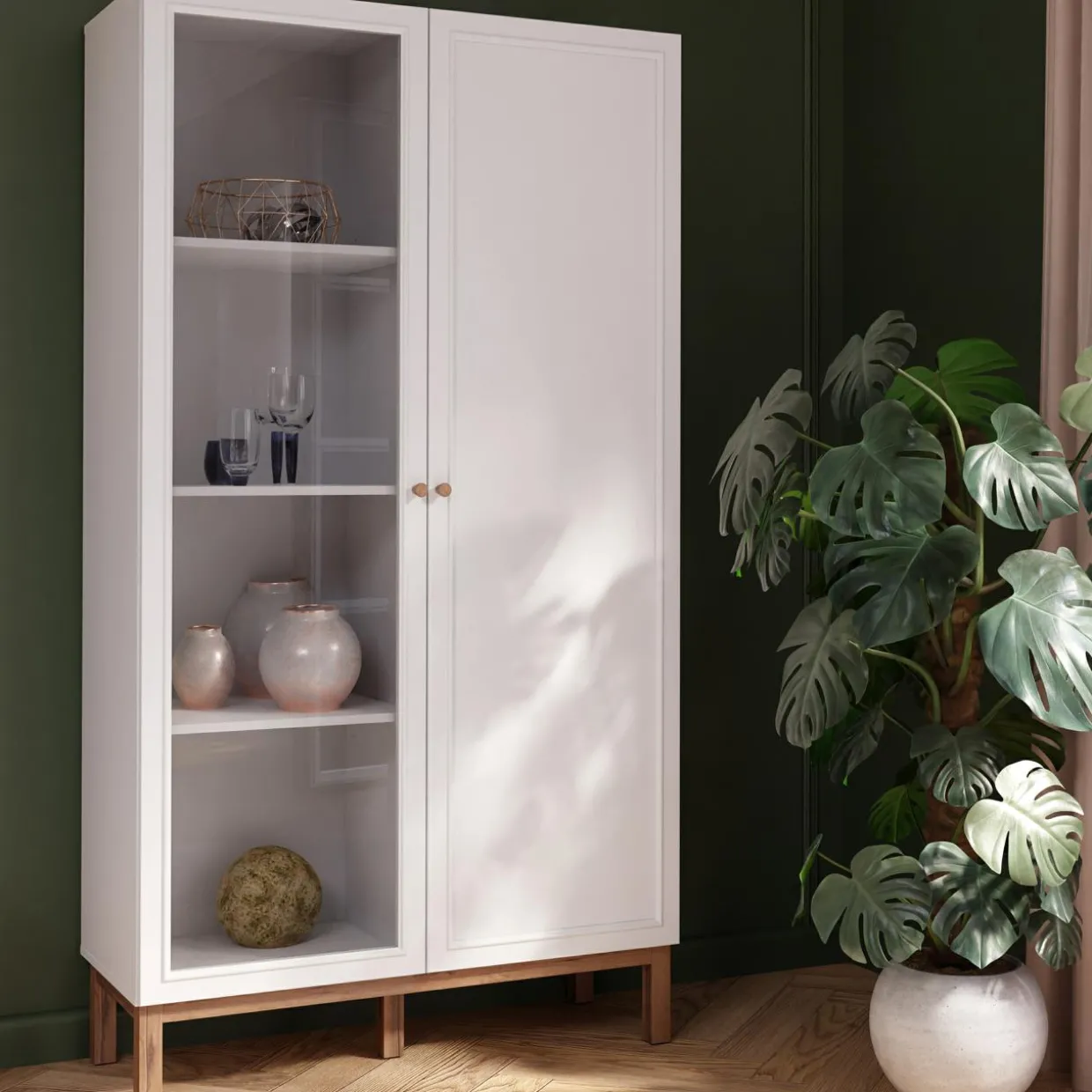 - Do witryny dobierz dodatkowe oświetlenie. włączone za przeszklonym frontem delikatnie rozświetli mebel, tworząc przytulną atmosferę.