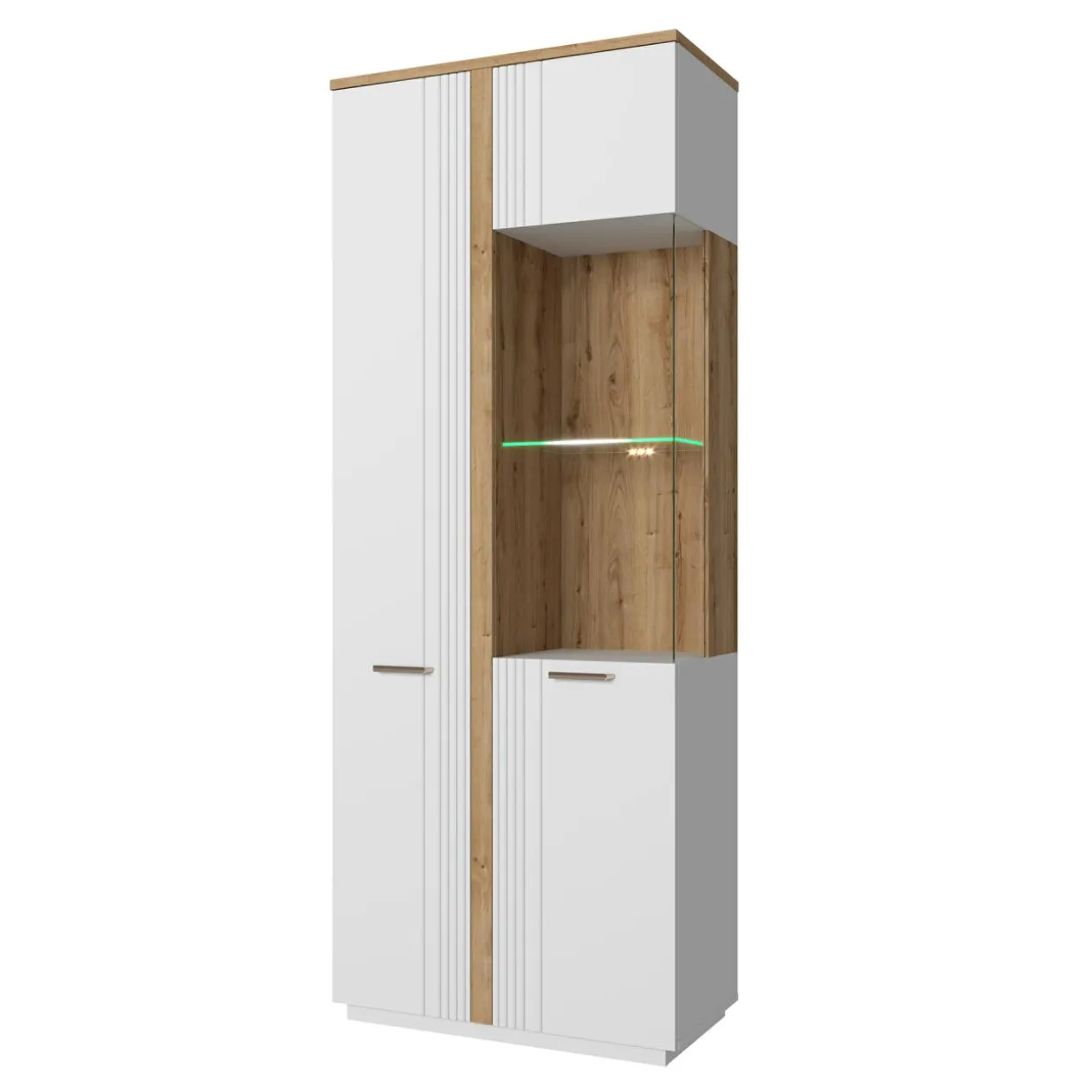 - Środkowa półka w witrynie wykonana jest ze szkła hartowanego, które podkreśli delikatne przedmioty.