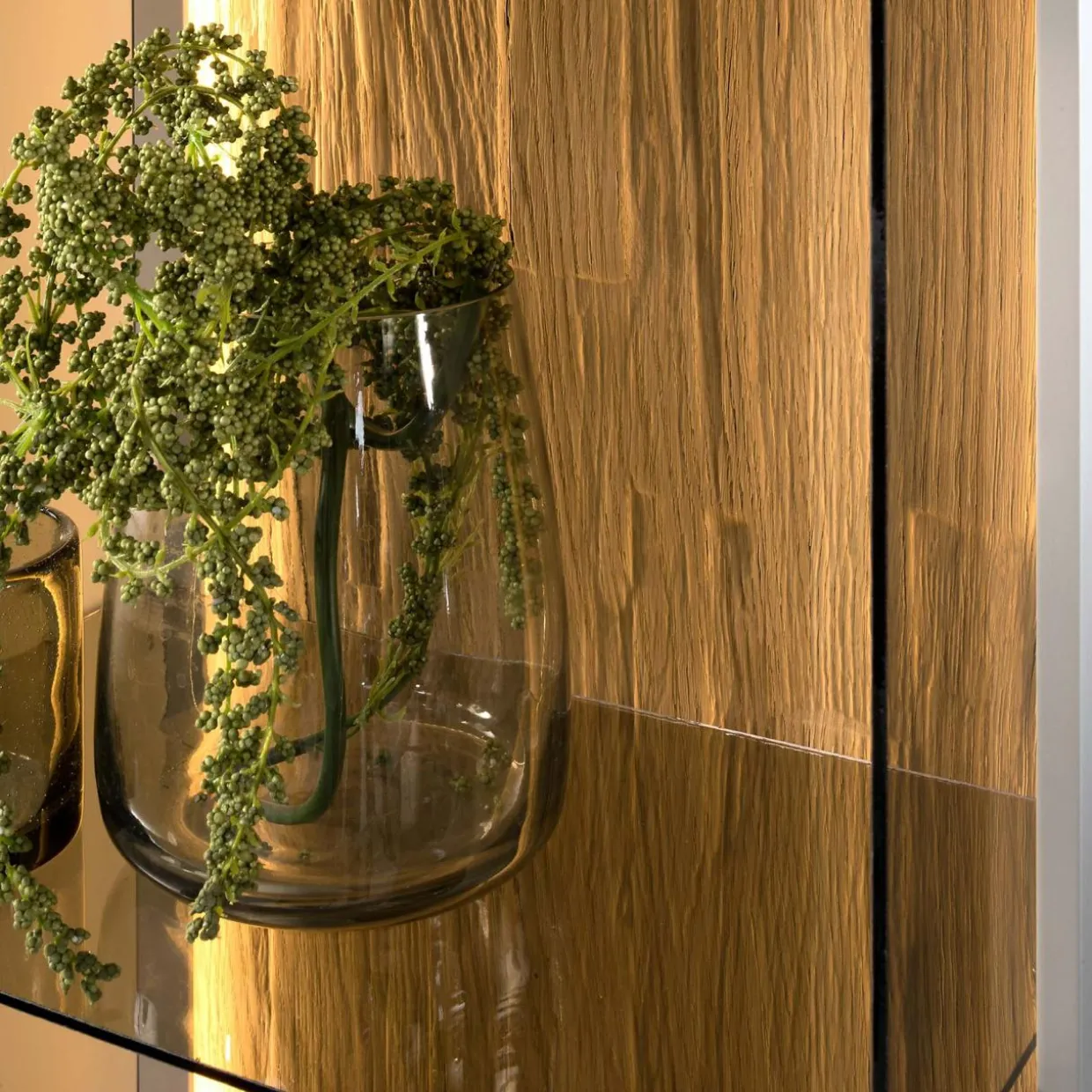 - Zanurz się w grze świateł i faktur — wbudowane oświetlenie LED w ciepłej tonacji wydobywa rysunek dębu, podkreślając ich unikalną strukturę.