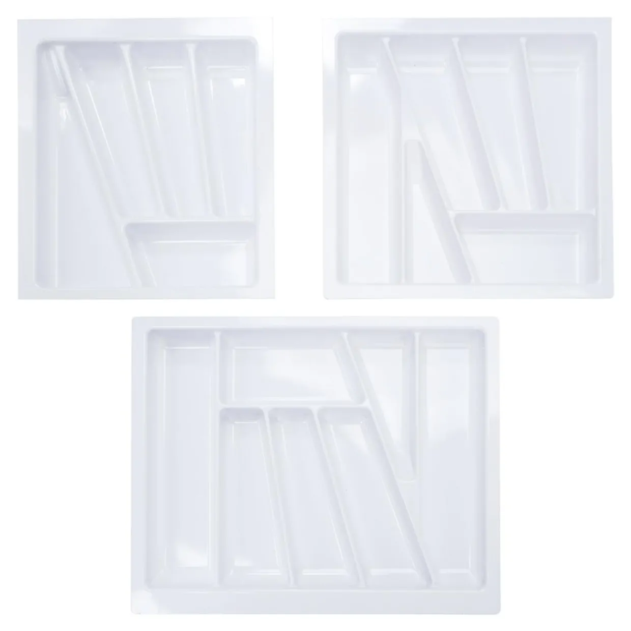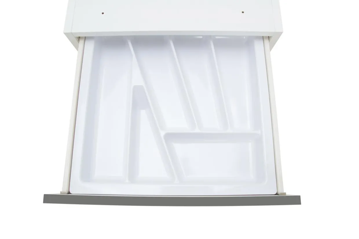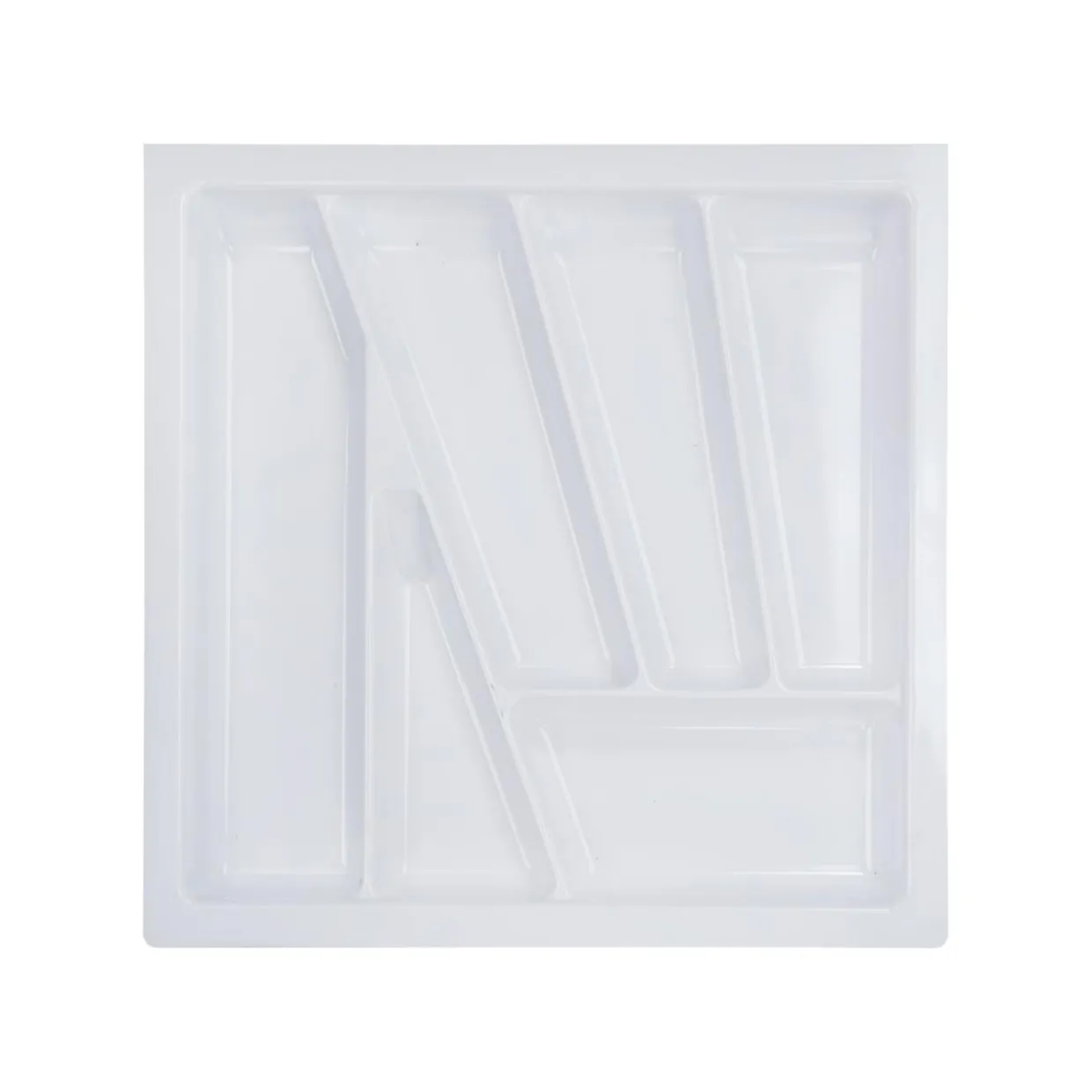 Wykonany z tworzywa sztucznego w białym kolorze posiada przegródki różnej długości.