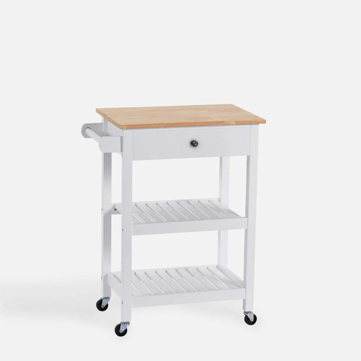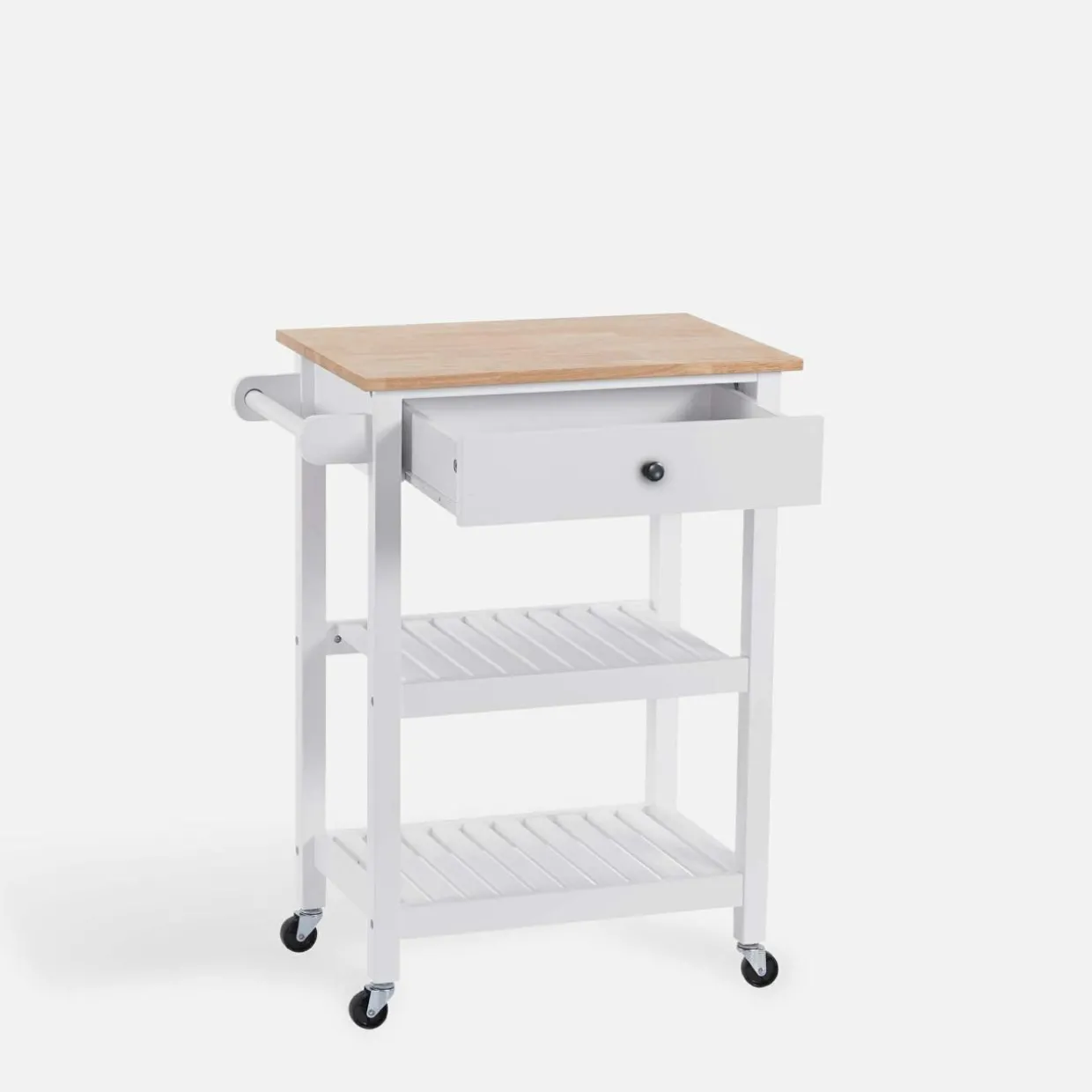 - Resztę ustaw na 2 półkach pod blatem. Dodatkowe miejsce sprawia, że przewieziesz wiele rzeczy za jednym razem!