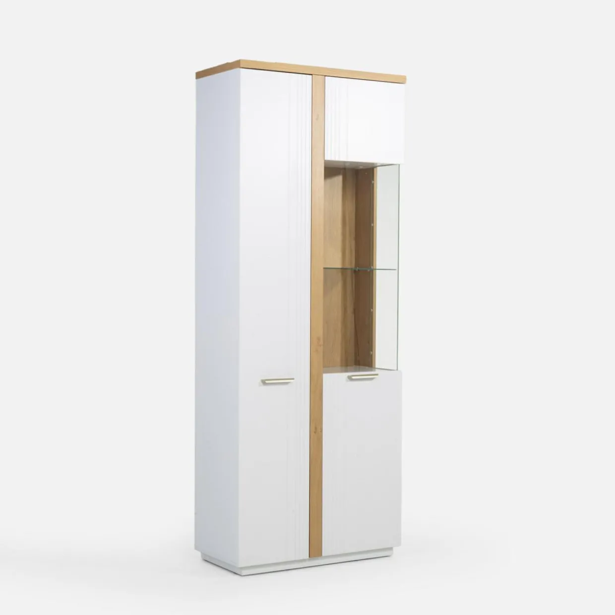 Z wysoką witryną DEKO zawsze będziesz na topie. Nowoczesny wygląd, opcjonalnie podświetlenie i przeszklona wnęka z półką to tylko niektóre z jej zalet.