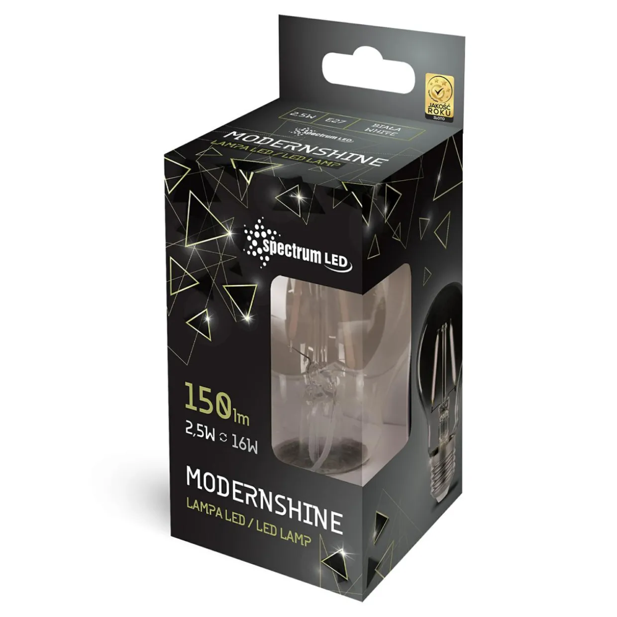 Żarówki z serii MODERNSHINE idealnie pasuje do kinkietów i lamp stołowych. Zużywają mało energii – 3 kWh/1000h a ich niespotykany design obejmujący przydymione szkło oraz widoczne filamenty znacząco podwyższają atrakcyjność wizualną. Świetnie nadają się do lamp z transparentnymi kloszami lub zupełnie pozbawionych kloszy.