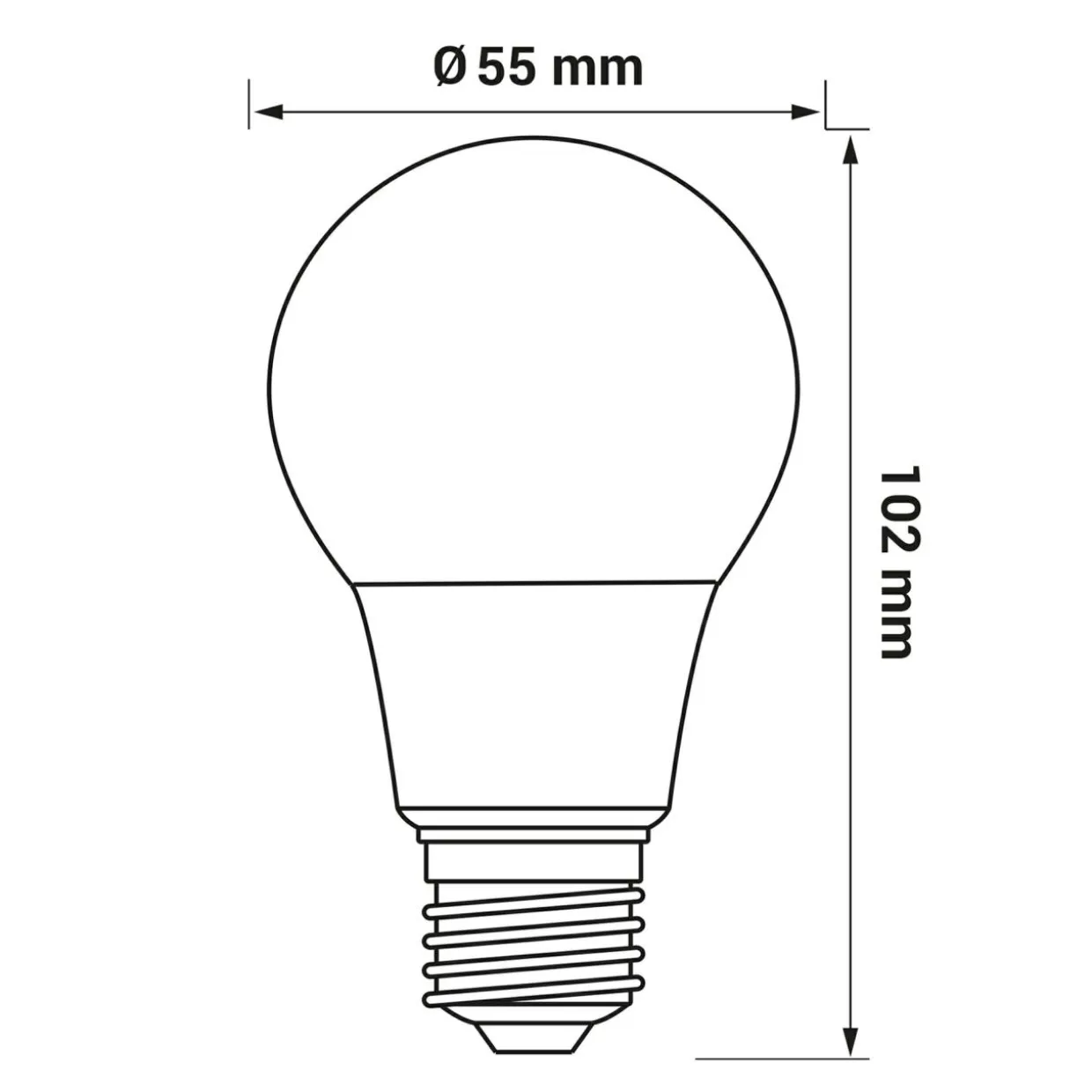 Żarówka ORO-ATOS-E27-A55-5W-WW emituje intensywne światło o strumieniu 500 lumenów (odpowiednik dawnej 42-watowej żarówki).