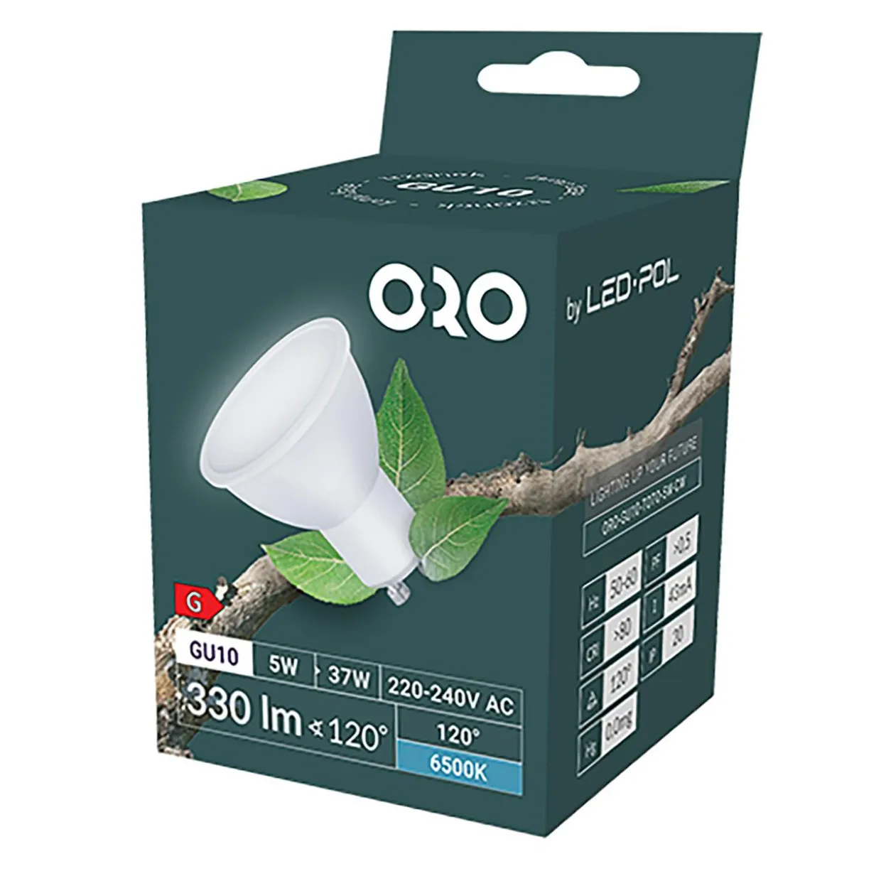 ORO-GU10-TOTO-5W-CW charakteryzuje się także bardzo dużą wytrzymałością oraz długą żywotnością (20000 godzin). Emituje zimne światło o temperaturze barwowej 6500K.