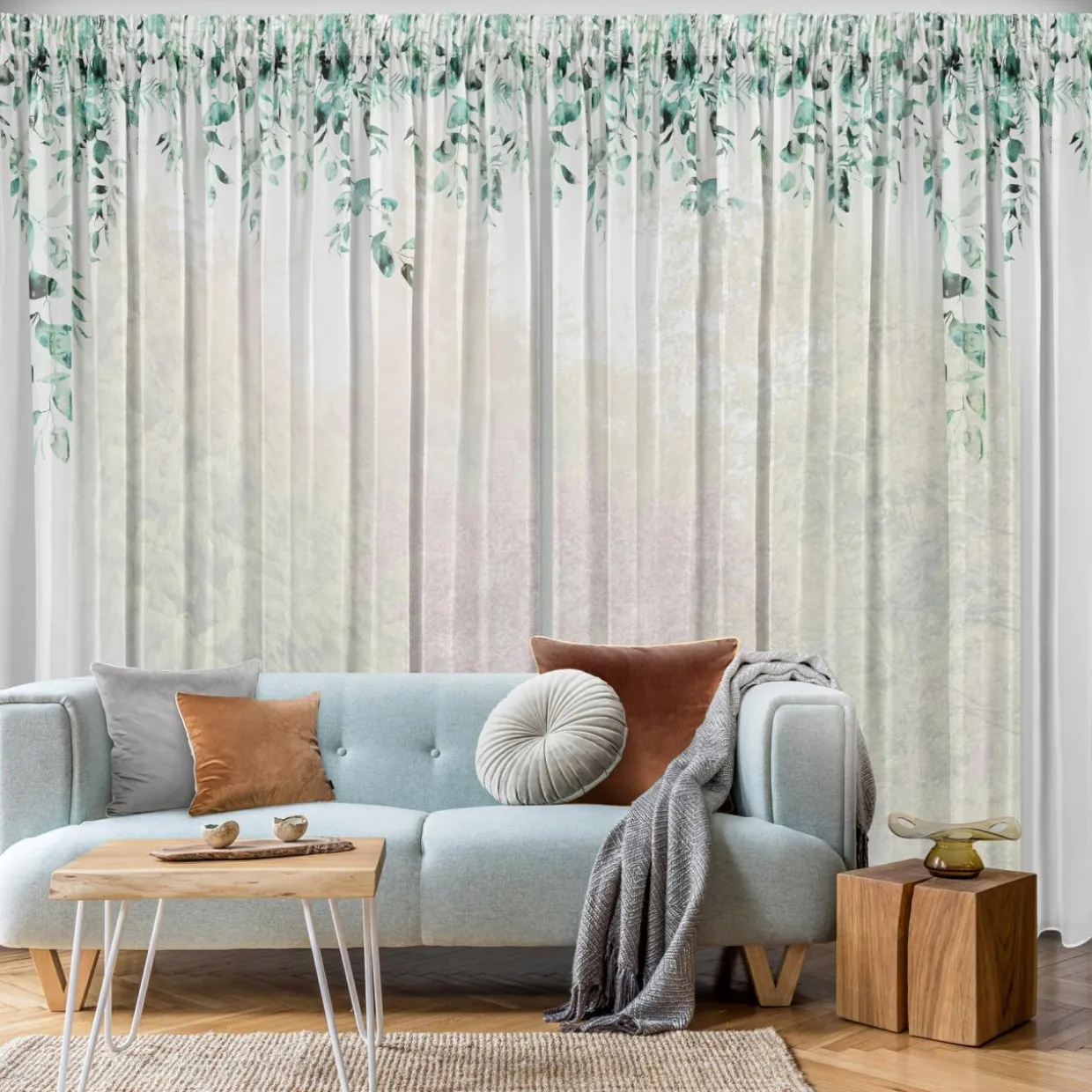 Firana do salonu BETSY ozdobi wnętrze w stylu nowoczesnym i skandynawskim. Zielone kwiaty na tle białej, zwiewnej tkaniny dodadzą aranżacji wyjątkowego klimatu.