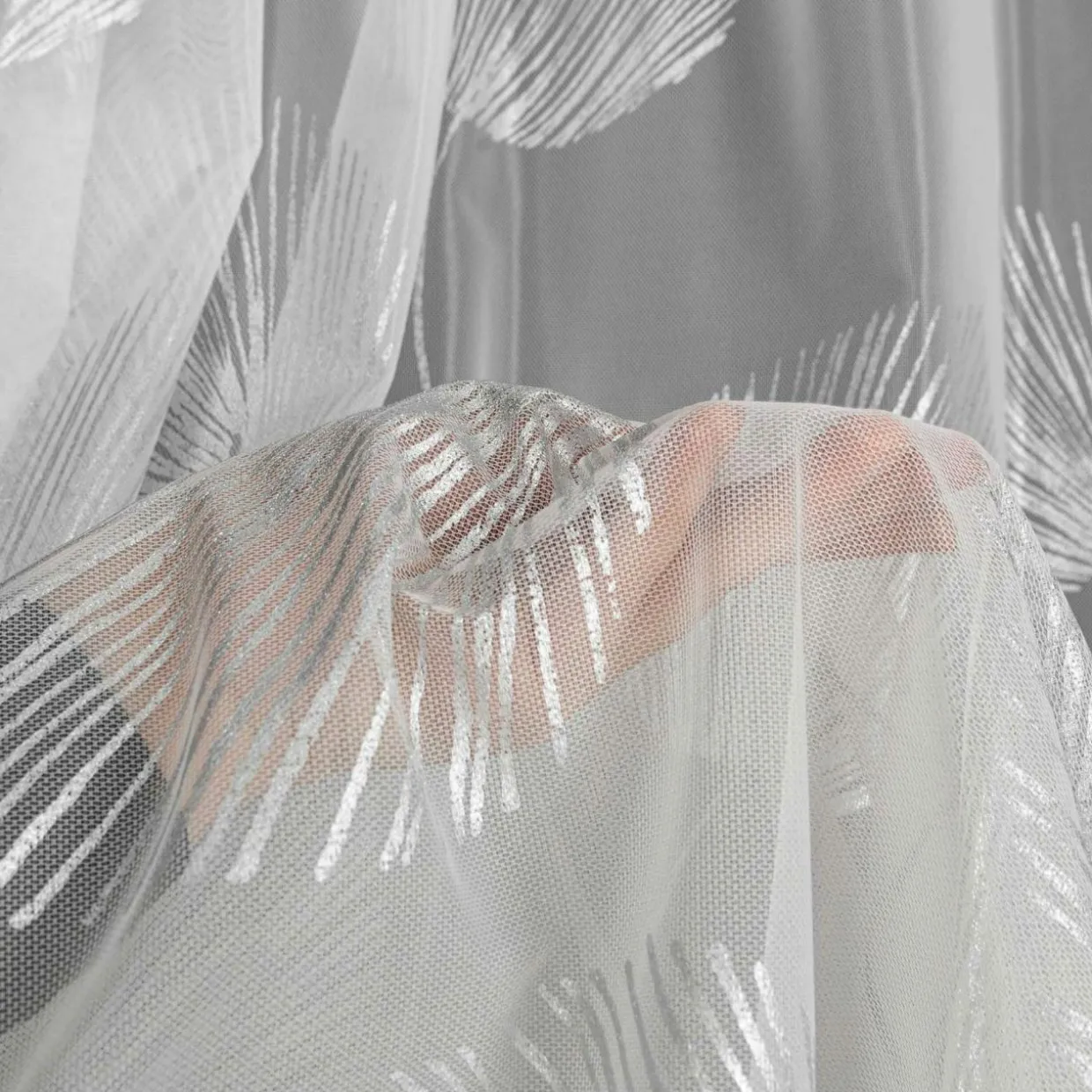Chcesz dodać wnętrzu świeżości i delikatności? Biało-srebrna zasłona HELEN na przelotkach będzie pięknie się układać oraz wprowadzi do wnętrza wyjątkowy klimat.