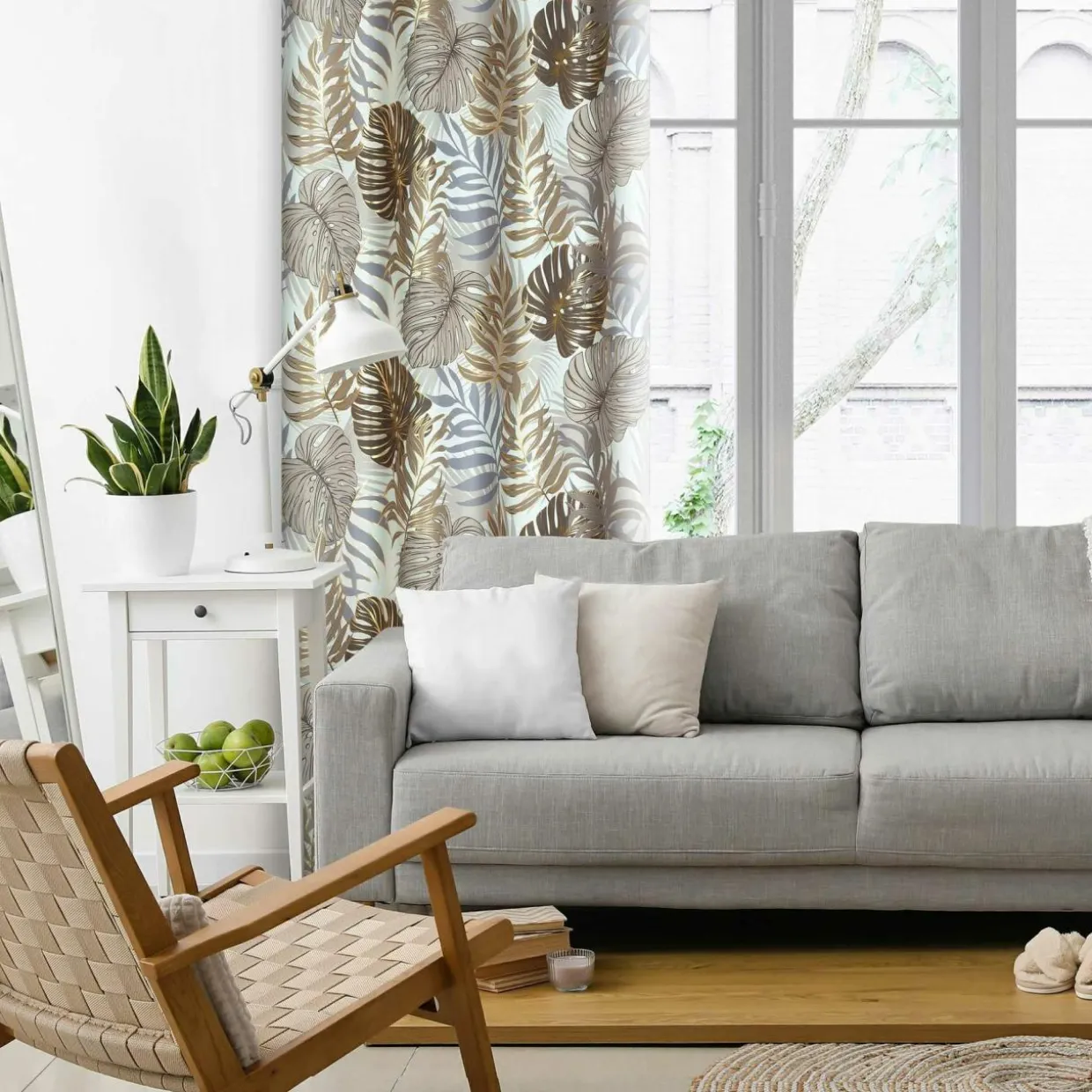 Zasłona KORFU w liście monstery podkreśli styl urban jungle.