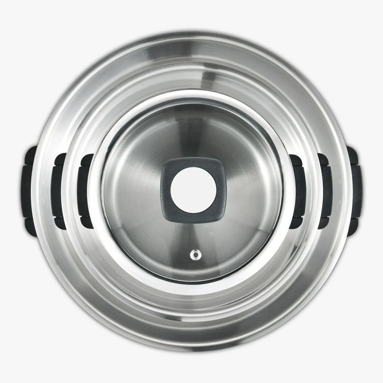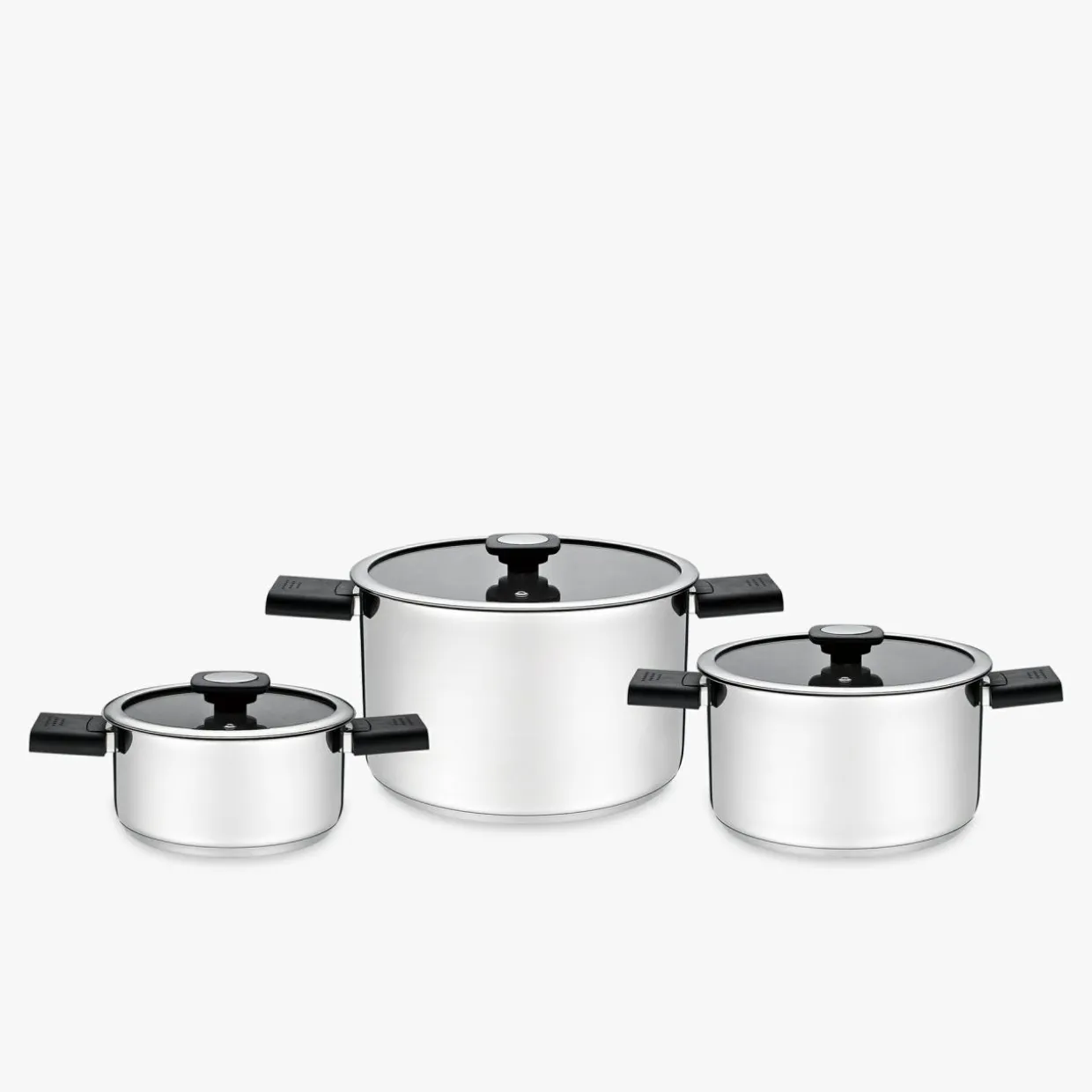 Komplet garnków ze stali nierdzewnej KATO z 5-warstwowym dnem nadają się na wszystkie typy kuchenek, w tym indukcję.