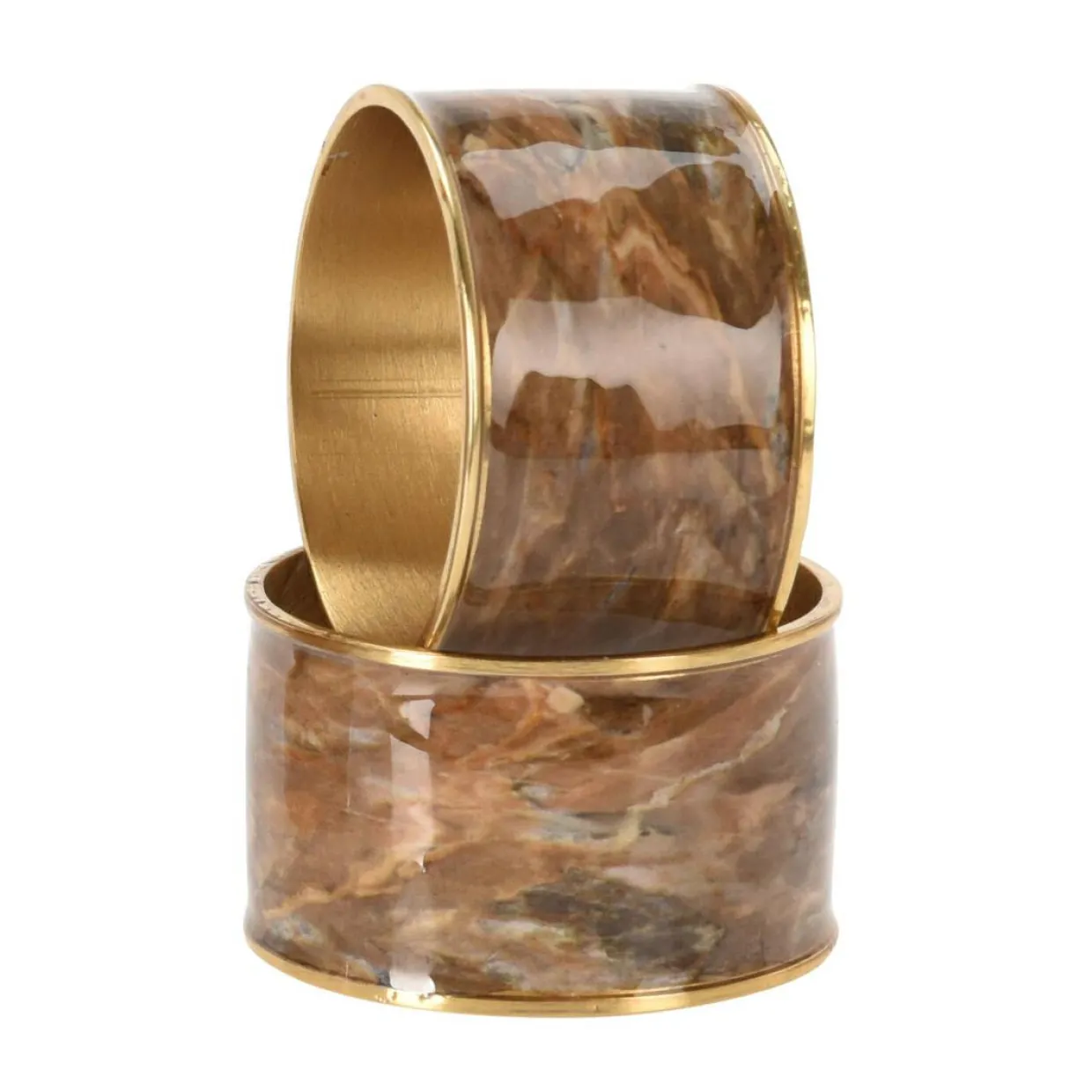 Zestaw 4 obrączek na serwetki brązowy marmur 4 cm