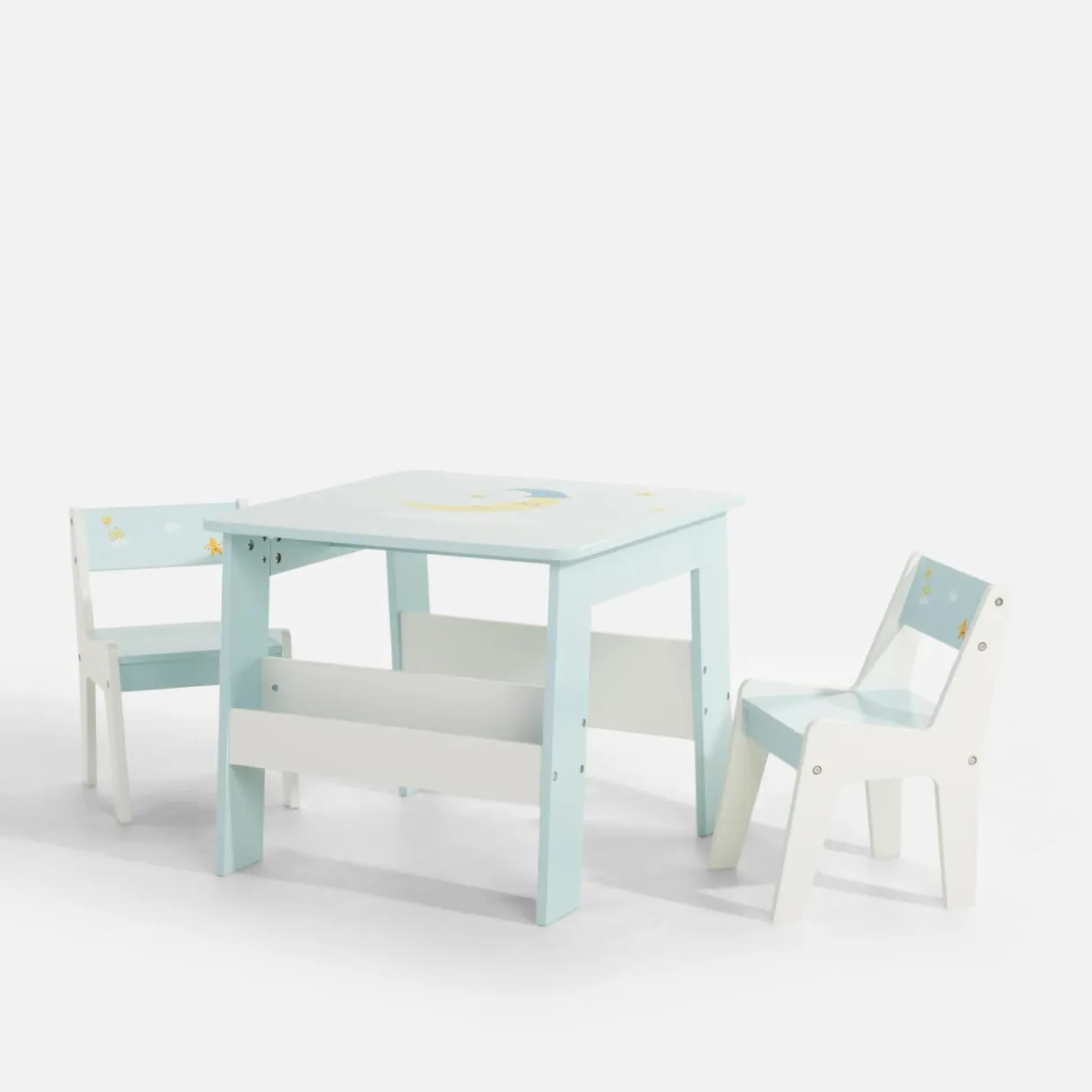 Komplet stolika i 2 krzesełek FLUTERNI stanie się ulubionym miejscem zabaw Twojej pociechy. Eleganckie przyjęcie z herbatką, a może szybkie kolorowanki? Zestaw stworzy przestrzeń, w której maluch rozwinie swoją kreatywność i wyobraźnię.