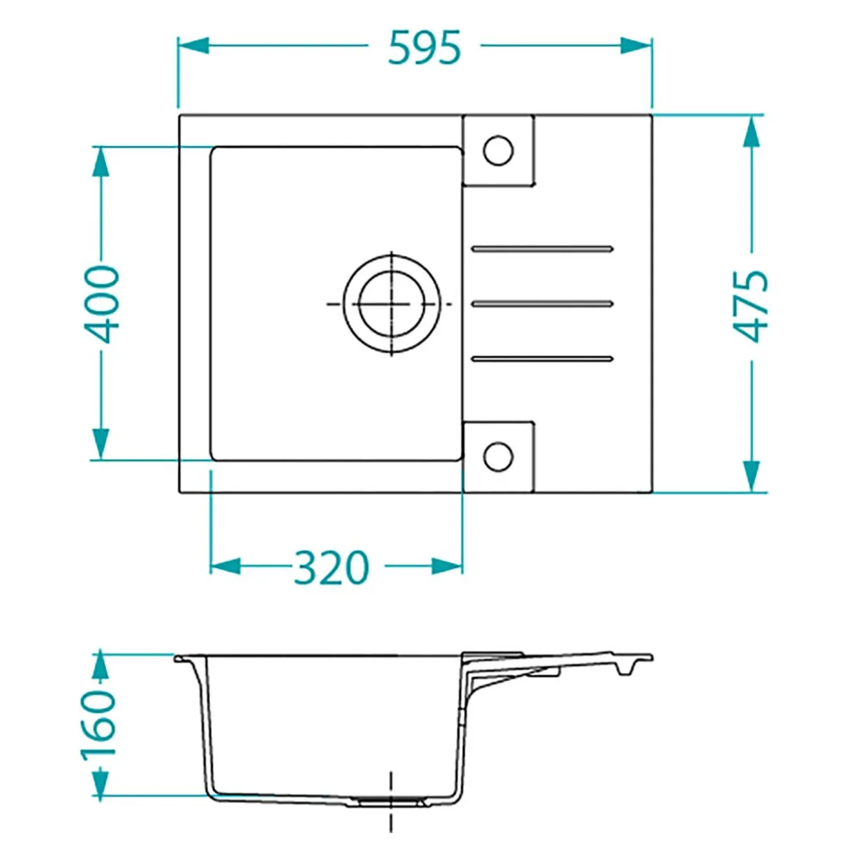 Posiada fabrycznie wykonane otwory ø35 mm na baterię i korek typu POP-UP. Do zlewozmywaka jest również dołączony syfon typu Safe Space. Odpływ – Ø 114.