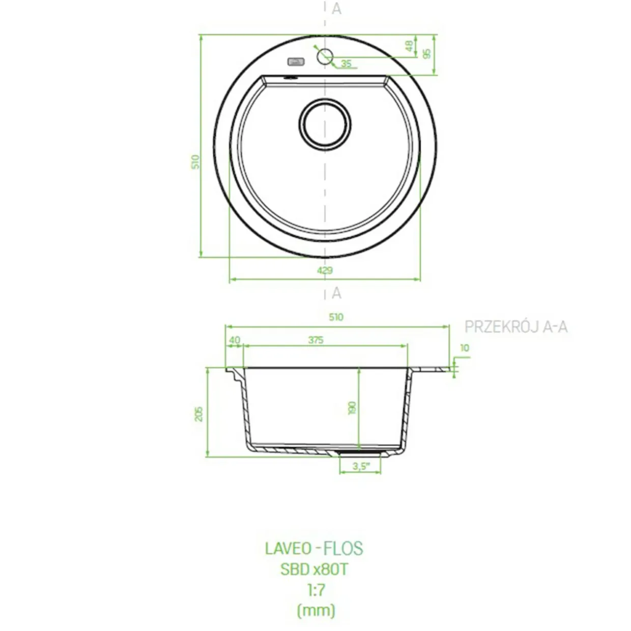 Zlewozmywak LAVEO FLOS o okrągłym kształcie doskonale sprawdzi się w kuchniach z szafkami o minimalnej szerokości 60 cm. Beżowy granitowy kolor nadaje ciepły, elegancki wygląd, który sprawdzi się w nowoczesnych aranżacjach kuchennych.