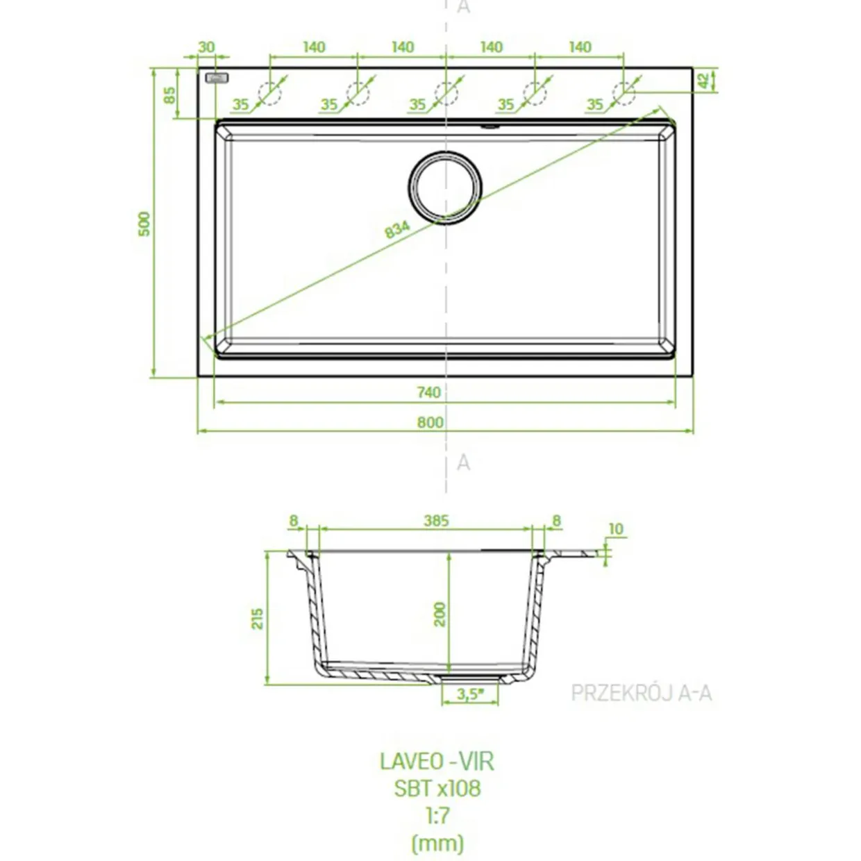 Zlewozmywak LAVEO VIR z przestronną komorą o długości 83,4 cm, zaprojektowany z myślą o wygodzie i praktycznością w kuchni. Jego elegancki czarny granitowy kolor nadaje nowoczesny charakter, a praktyczne rozwiązania technologiczne ułatwiają codzienne użytkowanie.