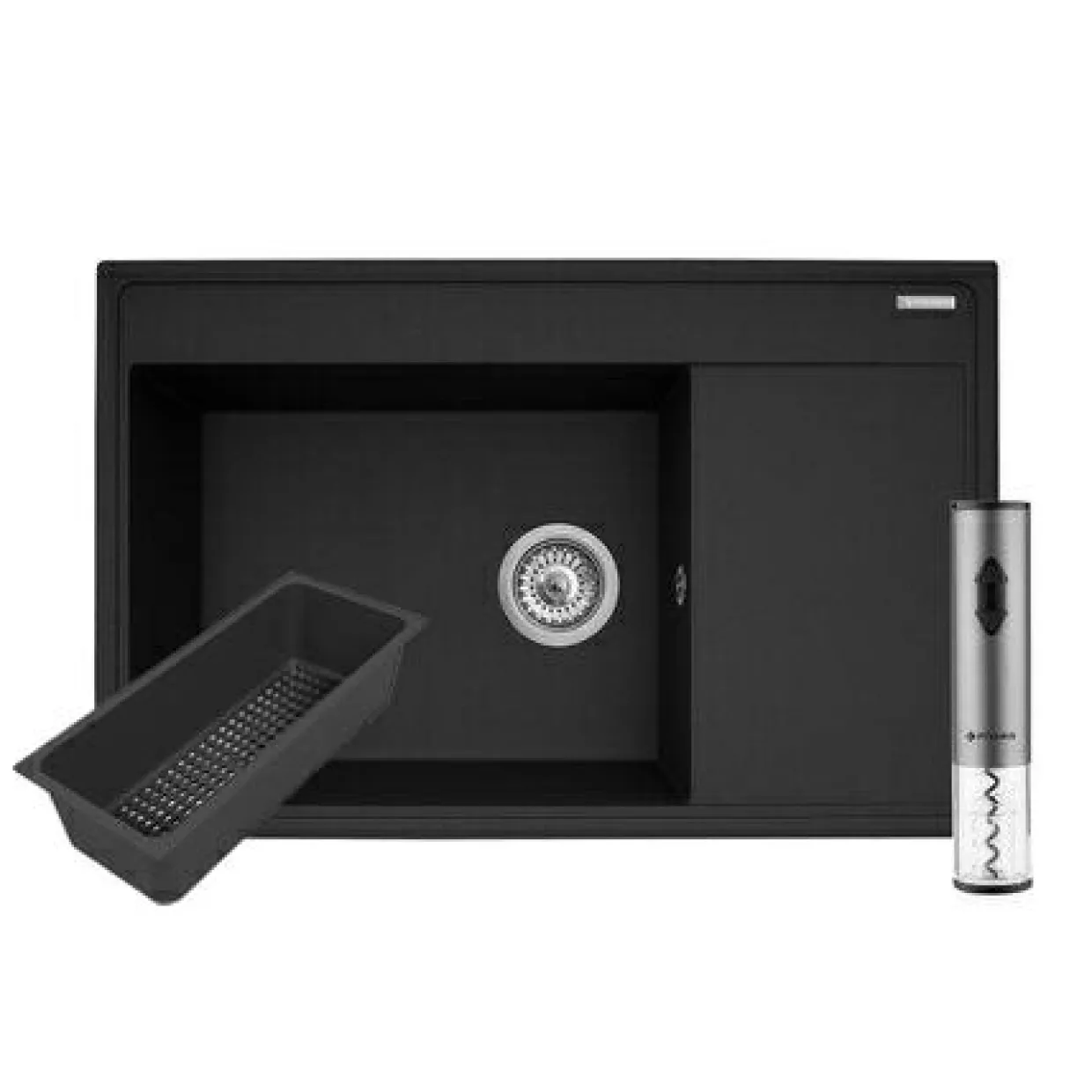 Oprócz standardowego ociekacza zintegrowanego z bryłą zlewozmywaka ARES dostajesz w komplecie również wkładkę ociekową, dopasowaną do kształtu zlewozmywaka oraz zawsze przydatny korkociąg elektryczny.