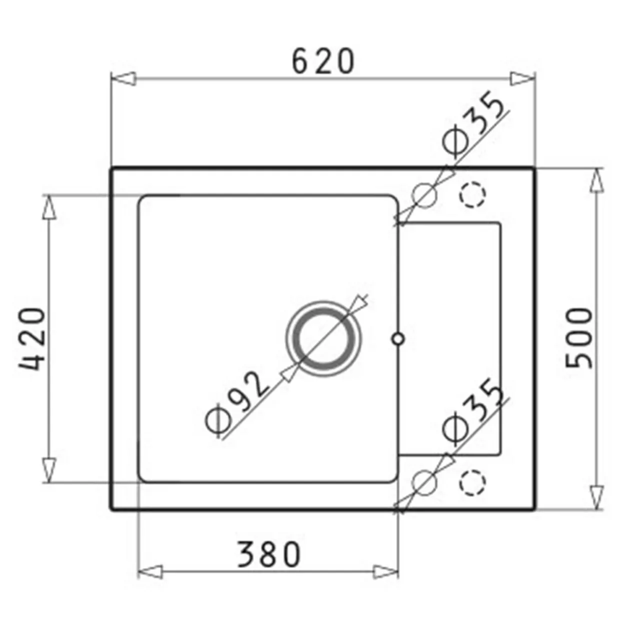 - zlewozmywak ZEFIR 62×50 cm,